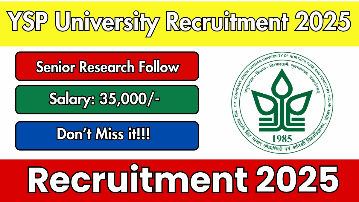 Dr Y S Parmar University of Horticulture and Forestry (YSP University) has released an official notification for the recruitment of 01 Senior Research Follow Posts. Interested and eligible candidates can apply Offline through the official YSP University website. The last date to submit the application form is 10-10-2025. In this article, you’ll find the YSP University Senior Research Follow Posts recruitment details, including eligibility criteria, age limit, salary structure, selection process, application steps, and direct links to the official notification and Offline application form.
