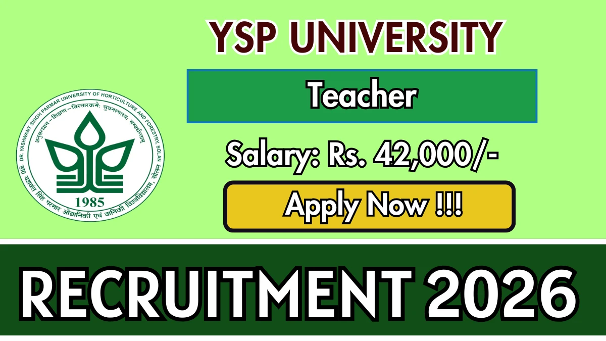 Dr Y S Parmar University of Horticulture and Forestry (YSP University) Recruitment 2026 for 01 posts of Teacher. Candidates with M.Sc Can attend the walkin. The Walk-in on 04-02-2026. For detailed information please visit YSP University official website, yspuniversity.ac.in.