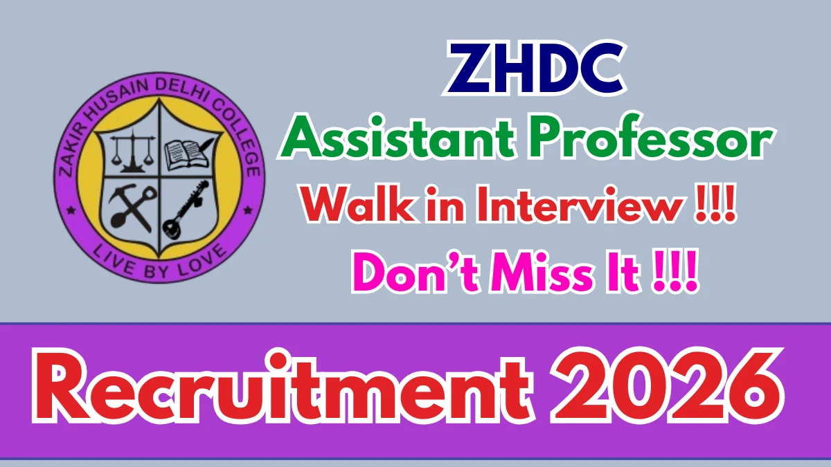 Zakir Husain Delhi College (ZHDC) Recruitment 2026 for 02 posts of Assistant Professor. Candidates Can attend the walkin. The Walk-in on 26-02-2026. For detailed information please visit ZHDC official website, https://www.du.ac.in.