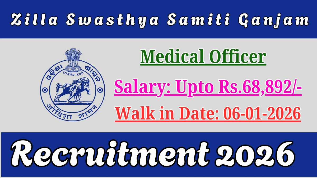 Zilla Swasthya Samiti Ganjam Recruitment 2025 for 14 posts of Medical Officer. Candidates with MBBS Can attend the walkin. The Walk-in on 06-01-2026. For detailed information please visit Zilla Swasthya Samiti Ganjam official website, ganjam.odisha.gov.in.